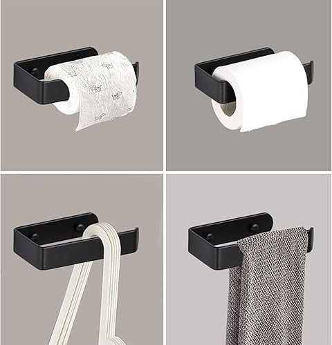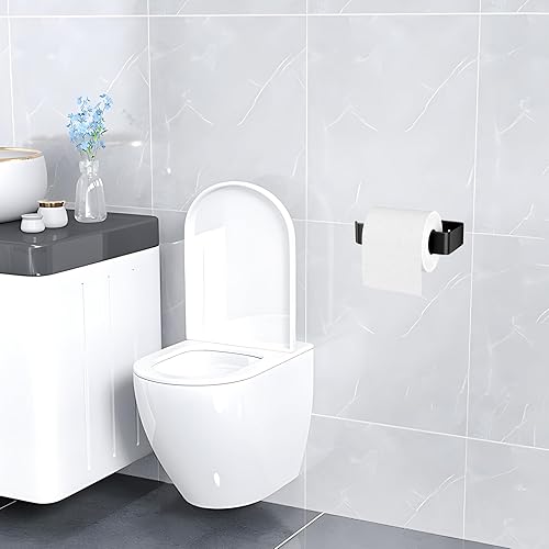 Portarotolo Carta Igienica, Montaggio a Parete o Autoadesivo, Portarotolo Carta Igienica Senza Foratura, Moderno Porta Carta Igienica Adesivo per Bagno e Toilette (Nero)