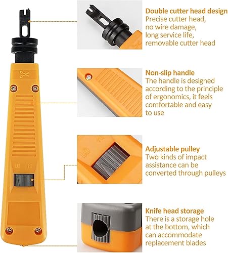 Pinza Crimpatrice Di Impatto Punch Down Impact Tool, Cablatore a Impatto Strumento Strumento Rete Telecom Punch Down Tool Impact Terminal Inserimento Strumento Tagliafili Amp Con Lame 110 88