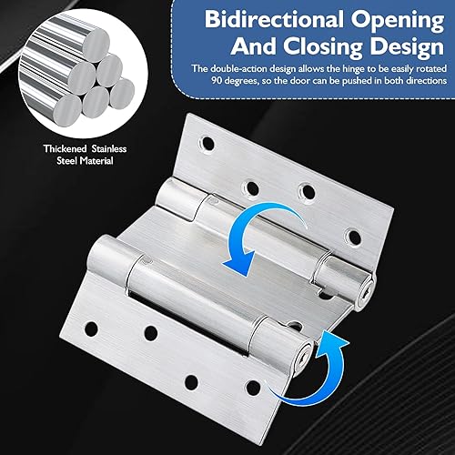 2 Pezzi Cerniere a Molla per Ante 100 mm, Cerniera per Porta a Pendolo in Acciaio Inox con Viti, Cerniere a Molla a Doppia Azione da 4 Pollici, per Anta Battente Bancone Bar e Caffetteria