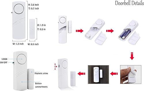 Campanello di allarme per porte e finestre di sicurezza personale | Sensore wireless per porte e finestre | Confezione da 10
