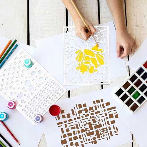 12 Pezzi Riutilizzabile Pittura Stencil Set, 29x21CM Plastica Disegno Pittura Modello di Stencil per Parete Pavimento, Mobili, Decorazioni Artigianali Fai Da Te
