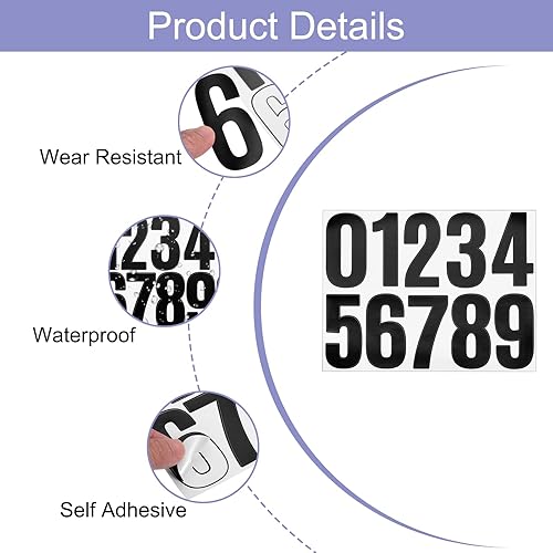 5 Fogli Numeri Civici in Vinile, 4 Pollici Adesivi Numeri Impermeabili per Cassette Postali, Insegne, Finestre, Porte, Numeri Civici, Nero