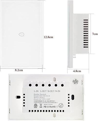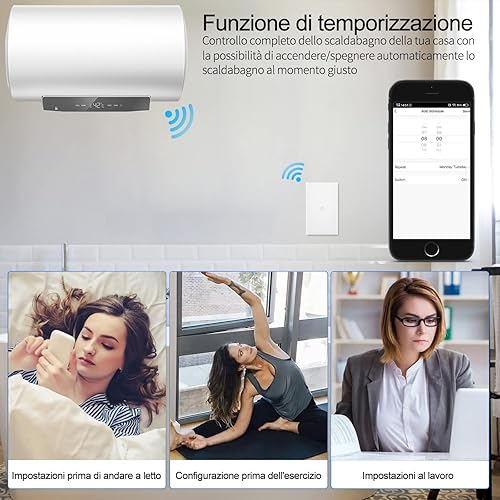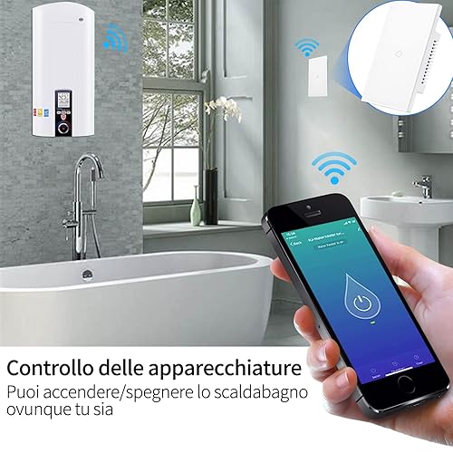 Interruttore Smart WiFi Scaldabagno 20A, Interruttore Touch Caldaia WiFi con Statistiche di Monitoraggio Energetico, Telecomando/Timer, Compatibile con Google Home e Alexa
