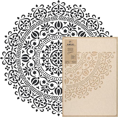 NAKLEO Stencil Riutilizzabile Plastica Parete - diametro 89 cm - Geometrico Floreale Mandala - Grande Carta da Parati Motivo Pittura Fai Da Te Artigianato Stampino - Tessuto Mobili Legno Tela