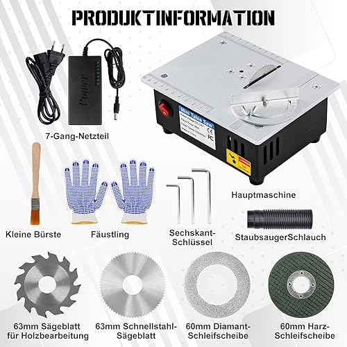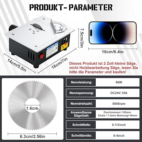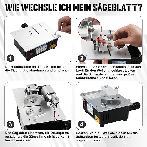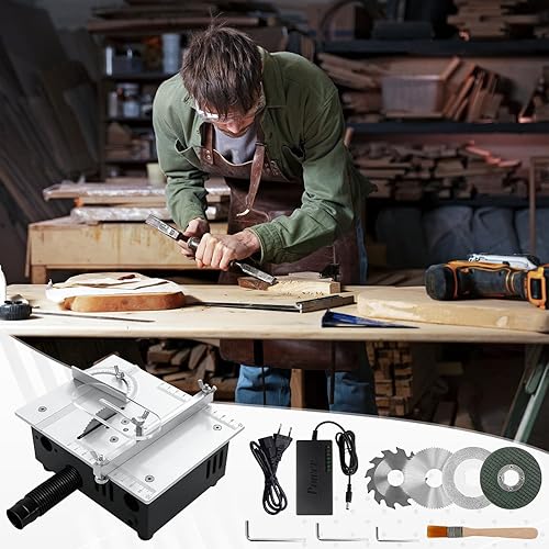Mini sega circolare da tavolo, 96 W, multifunzione, con 4 lame, di precisione, 7 velocità, alimentatore regolabile per progetti fai da te
