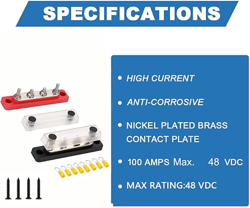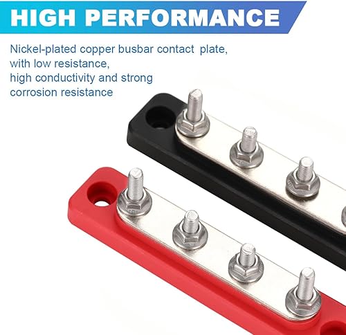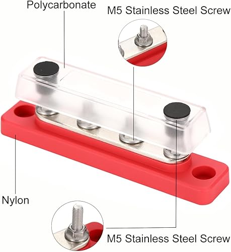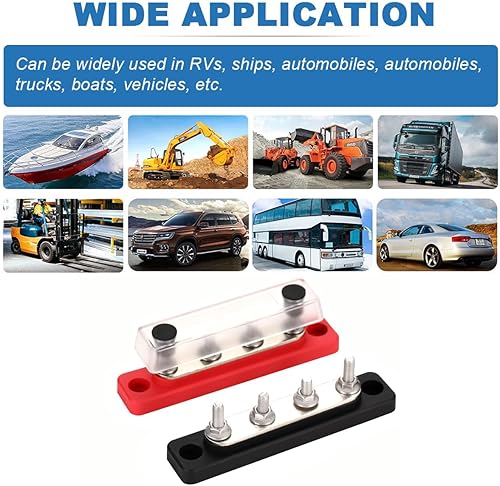 1 Paio Barra collettrice a 4 posizioni DC 12-48V 100 A,morsettiera di distribuzione dell'alimentazione a batteria a 4 vie con coperchio trasparente