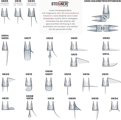 Guarnizione doccia, 50cm, per spessore vetro 5/6 mm, guarnizione dritta in PVC, UK22-06