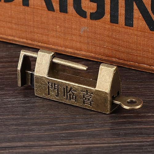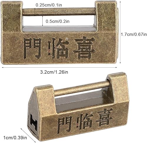 Lucchetto in Stile Cinese Vintage, Lucchetto Antico d'Arte, Lucchetto in Bronzo Antico in Mini Rame Antico Lucchetto Orizzontale per Portagioie Casse Casse