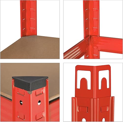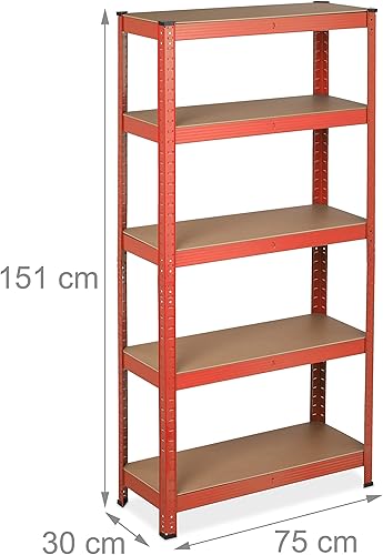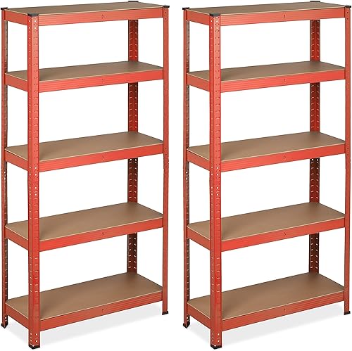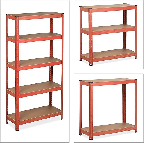 Relaxdays 2X Scaffale con Sistema a Incastro, Fino a 875 kg, Scaffalatura ad Alta Portata 5 Ripiani, 151x75x30 cm, Rosso