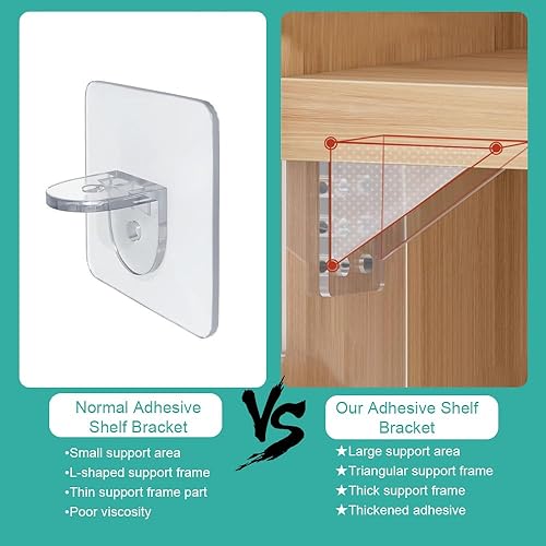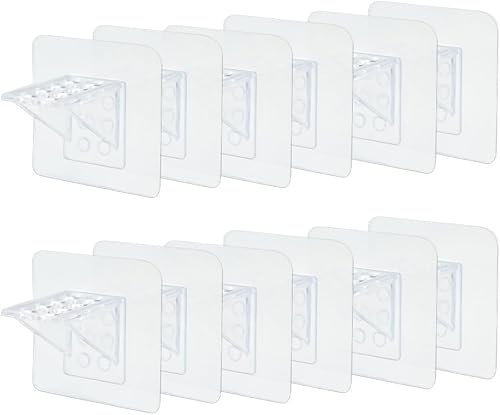 12 Pz Pioli di Supporto per Mensola Staffa per Mensola Adesiva Acrilica Molletta di Supporto per Mensola Supporti Angolo Retto Senza Perforazione Molletta per Mensola a Muro Armadi Librerie