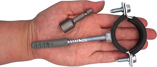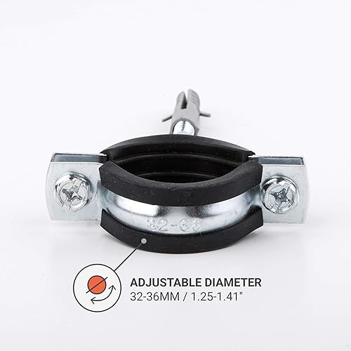 SKIR'CO Confezione da 2 staffe per tubi con rivestimento in gomma nera per tubi Ø 32-36 mm, per montaggio a parete e soffitto (2 pezzi, con punta magnetica esagonale)