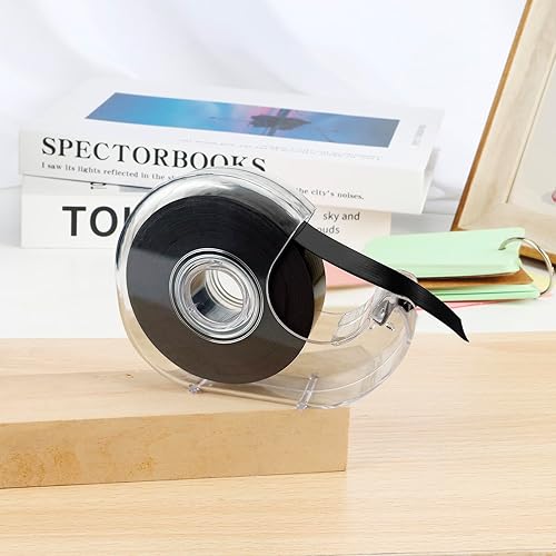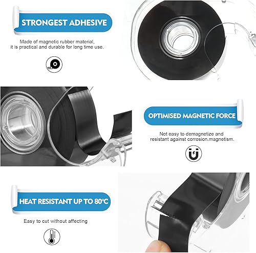 9M Nastro Magnetico Adesivo in Dispenser - Nastro Magnetico per Cartoline, Foto e Lavagne Bianche (Nero)