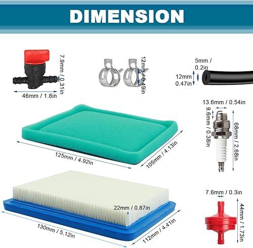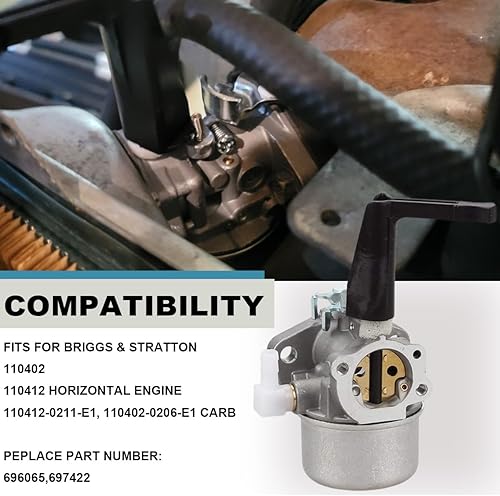 Carburatore per Briggs & Stratton 110402 110412 215369 Motore del timone con 696065 697422 Carburatore Cartuccia Filtro Aria Candela Guarnizioni Tubo Carburante