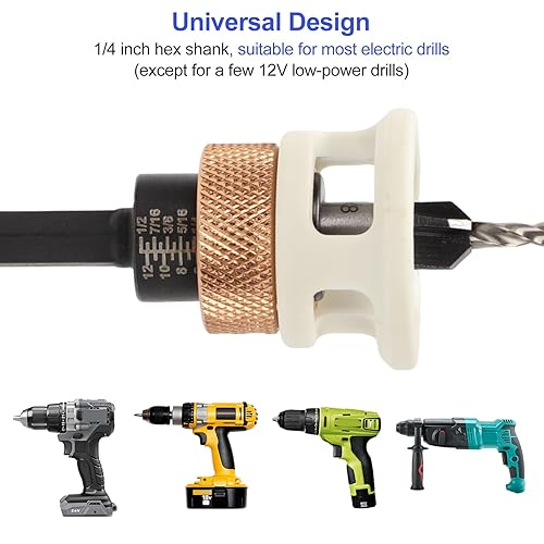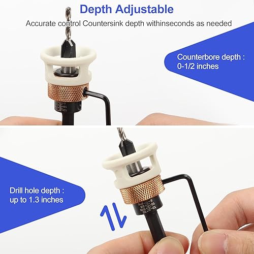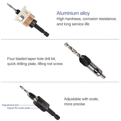 Set di 6 Punta da Trapano con Svasatore, Svasatore per Legno Regolabile, Punte Trapano Legno con Arresto di Profondità, con Codolo Esagonale da 1/4”, HSS-M2, per Lavorazione del Legno