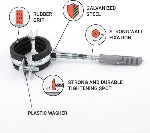 fascette per tubi da 40mm con inserto in gomma in acciaio inox V2A I fascette per cavi da avvitare I fascetta per tubi 40mm, fascette per tubi