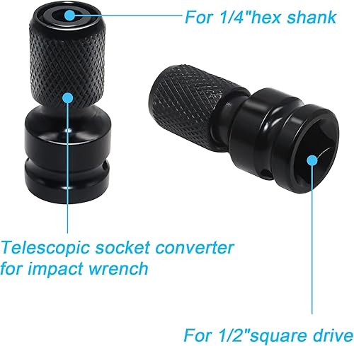 GIAK Adattatori con Attacco da Quadrello da 1/2” a Esagonale da 1/4” Adattatore per Avvitatori 2 Pezzi Adattatore di Impatto Sgancio Rapido Adattatori per Chiavi ad Impatto e Cricchetto