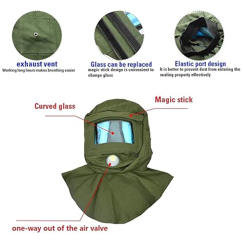 Cappellino con sabbiatura e maschera anti-vento, anti-sabbia/anti-polvere, in tela (set da 4 pezzi), colore: verde