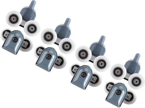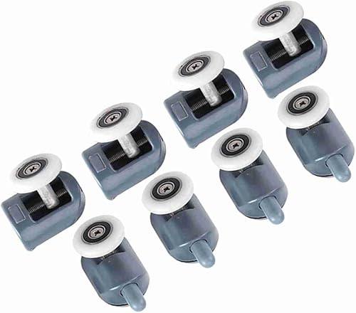 8Pcs Rulli per porta doccia Doccia Runners/Ruote/Pulegge/Guide Home Bagno fai da te Parti di ricambio (4 rulli superiori + 4 rulli inferiori + Vite + coperchietti)(Double wheel)