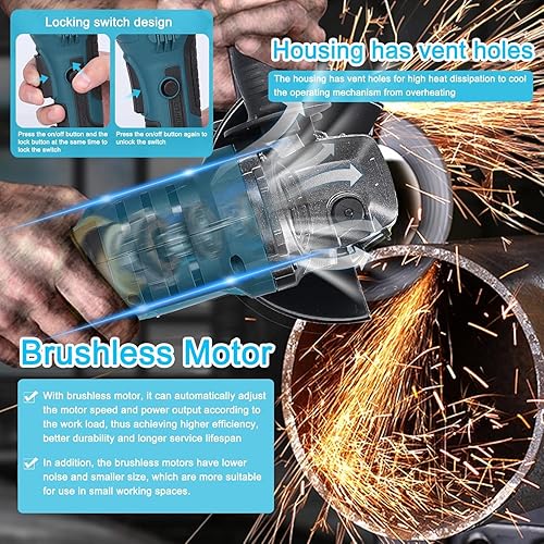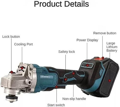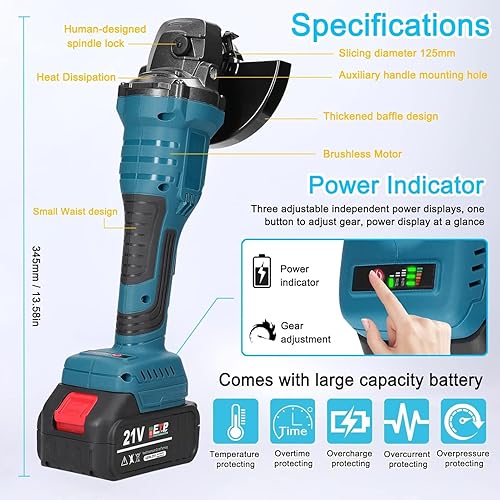 Smerigliatrice angolare 125mm, 21V M14, Flex Smerigliatrice Angolare Motore brushless con 2 batterie da 1300mAh per tagliare e lucidare piastrelle di ceramica, legno, pietra e acciaio