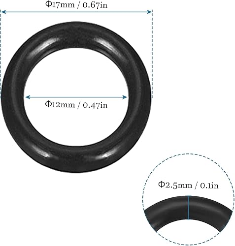 17mm x 12mm x 2.5mm Nitrile Gomma O-Rings x 10pz Rotondo Guarnizione Rondella per Rubinetto Idraulica Riparazione Sigillatura Connessione [Nero]