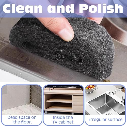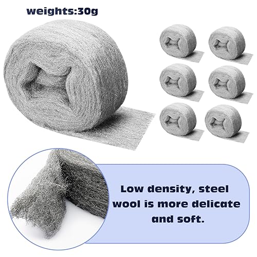 BSITSSS 6 PCS Lana d'Acciaio, Lana di Acciaio Di Pulizia Paglietta Abrasiv, Lana d'acciaio 0000 er Lucidatura Legno Vetro Metallo Prevenire Topi (30g)
