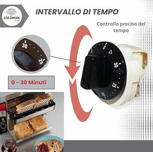 Timer Interruttore bipolare meccanico per tostapane e elettrodomestici per la casa e l'ospitalità. Controller Tempo: 30 minuti