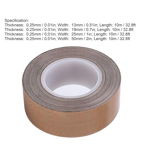 Nastro Adesivo in PTFE Nastro in Teflon Ad Alta Temperatura Strumento Termico Isolante Sigillante Adesivo Ad Alta Temperatura per Sigillatrice Sottovuoto(0.25mm x 50mm x 10m)