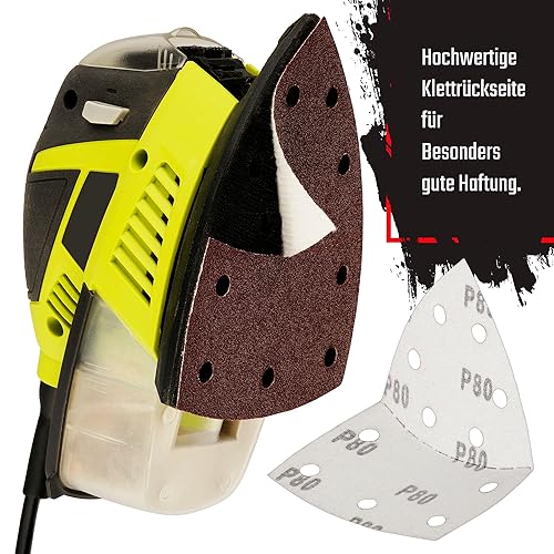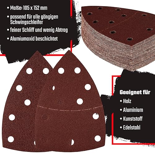 Triangoli Abrasivi Prio │ 50 pezzi │ 11 fori │ 105 x 152 mm │ grana 120 │ per levigatrici multiple │ Fogli Abrasivi │ Abrasivi Triangolari │ Carta Abrasiva