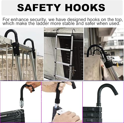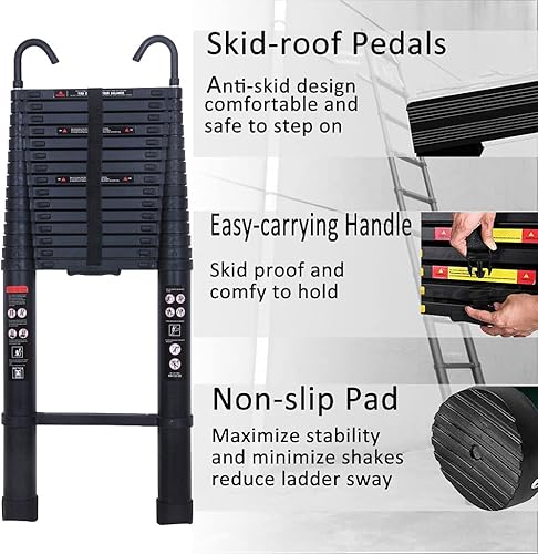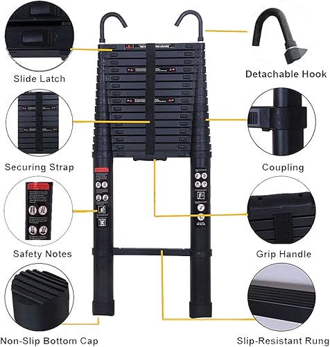 Scala telescopica da 5 m, in alluminio, allungabile, portatile, pieghevole, con scala EN131, portata 150 kg