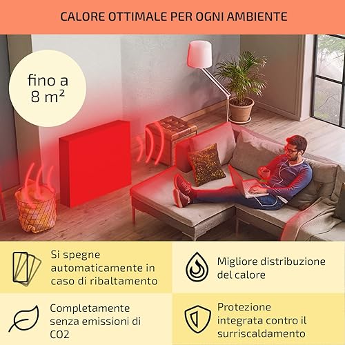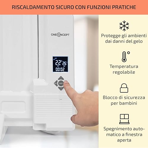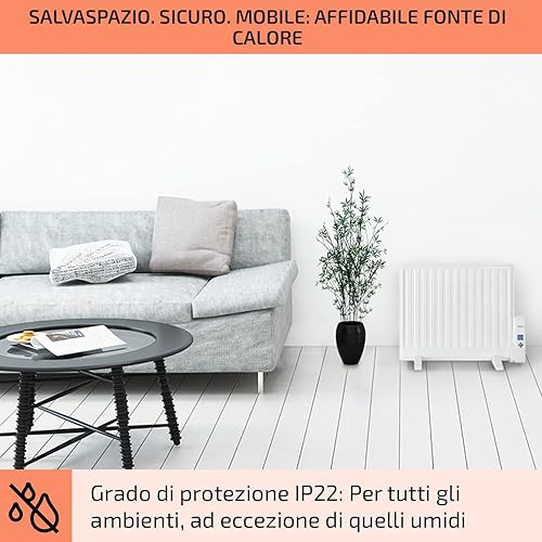 Stufa Elettrica Basso Consumo, Termosifone Elettrico Silenzioso da 600W da Muro, Radiatore ad Olio Indipendente e Portatile Smart, Termosifone ad Olio con Touch Control e Termostato