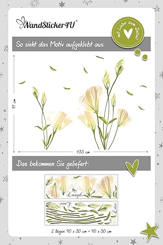 adesivi murali CALLA IN BIANCO (135x97 cm) I impermeabile piastrelle murales adesivi parete fiore piante verde giglio I Decorazione soggiorno camera letto cucina bagno
