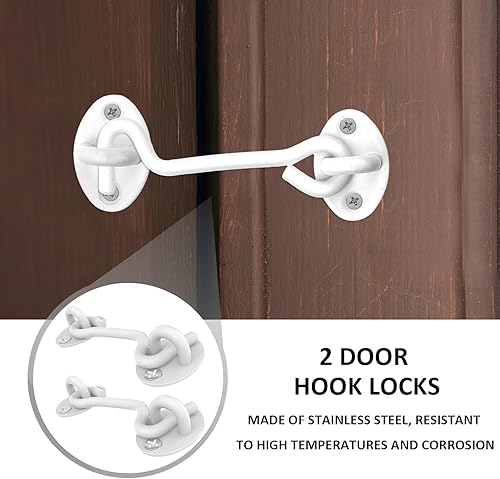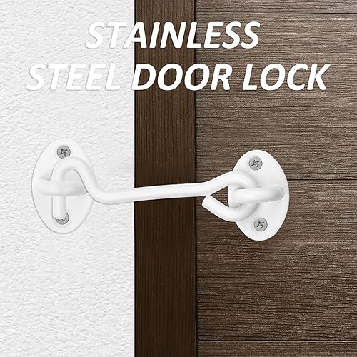 2 ganci per porta, ganci per porte e chiavistelli, serrature per porte in acciaio inox, ganci per porte girevoli, ganci per cabina in acciaio inox per porte, finestre, recinzioni, armadi, bianco