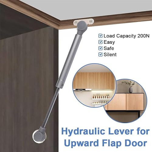 2 Pezzi Molle a Gas con Viti 200N/ 20KG Pistoni per Ante Cucina, Ammortizzante e Silenzioso, Impermeabile e Antiruggine, Pistoncini per Mobili per Ante di Armadi in Legno e Coperchi di Scatole