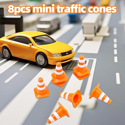 8 Pz Mini Coni Stradali, Piccoli Coni Sicurezza da Costruzione da 3,5cm Piccoli Segnali di Attenzione Stradali Mini Segnali Sicurezza Stradale Barricate per Scene di Strada in Miniatura