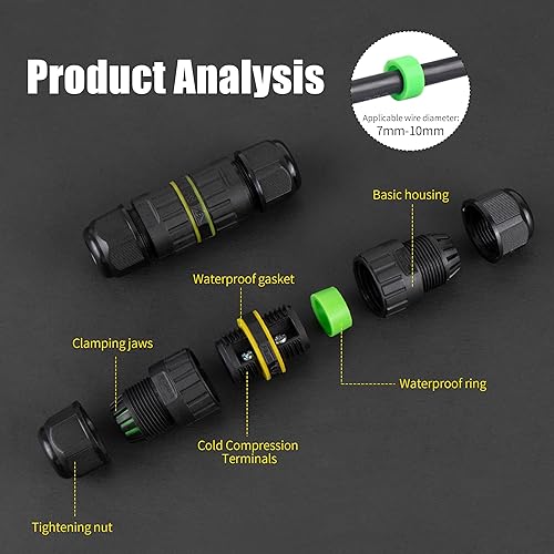 4 Pezzi Scatola di Giunzione Impermeabile IP68, Connettore Stagno Manicotto di Collegamento Scatola di Collegamento a 3 Poli per diametro del cavo di 3.5-10 mm