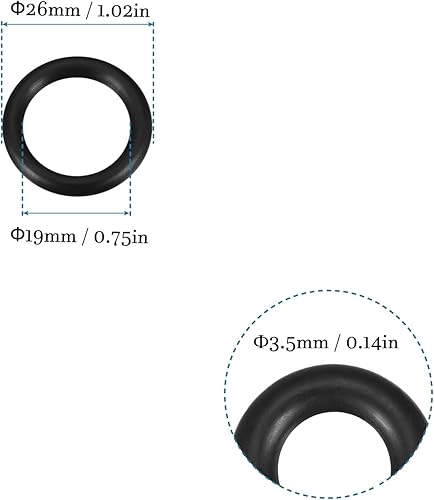 26mm x 19mm x 3.5mm Nitrile Gomma O-Rings x 20pz Rotondo Guarnizione Rondella per Rubinetto Idraulica Riparazione Sigillatura Connessione [Nero]