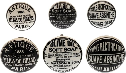 Mango Tree - Set misto di pomelli in ceramica in stile vintage bianco e nero per credenza, confezione da 6 (MG-315)