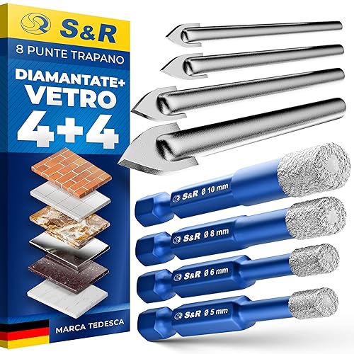 S&R Punta Trapano per Piastrelle, Vetro, Ceramica Professionali, Set trapano Piastrelle, Box in plastica 4 PZ.: 4,5,6,8 mm