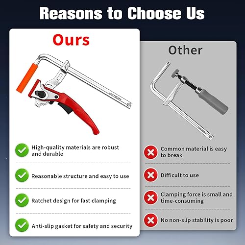 2 morsetti a leva, 160 x 60 mm, costruzione robusta e durevole, forza di serraggio regolabile, ideale per serraggio sicuro di pezzi in diverse applicazioni