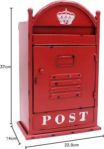 Cassetta delle lettere vintage da parete, in metallo, 22,9 x 14 x 37 cm, colore: rosso rustico
