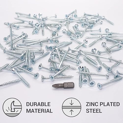 SKIR'CO (300 pezzi) Viti in acciaio zincato, 4,0 x 40 mm, per legno argento, viti per truciolato, filettatura parziale, testa svasata Pozidriv