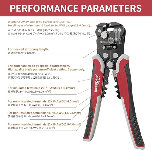 BOOSDEN Pinza Spelafili Automatica, Spelacavi Multifunzione,3 in 1 Pinza Spelacavi, Pinza Spelafili ElettricistaSpellafili con Diametro di 0.2-6mm²/24-10 AWG