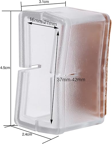 piedini gomma rettangolari sedie + 8 pezzi/set Gambe per sedia Coprigambe per mobili con protezione rettangolare e suola in gomma(Trasparente)