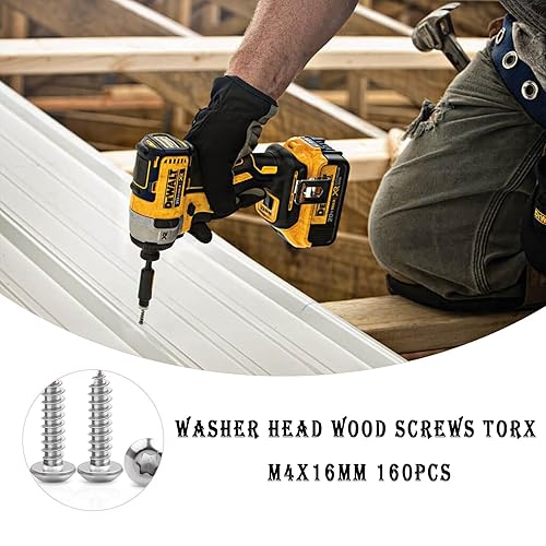 Hpamba 160 Pezzi M4 X 16mm Viti Per Legno Con Testa A Rondella Torx Vite Autofilettante Viti A Testa Bombata Torx, Viti Autoperforanti Per Legno, Testa Cilindrica, Filettatura Completa