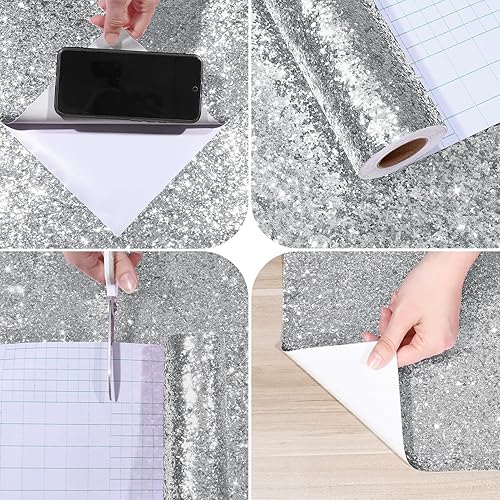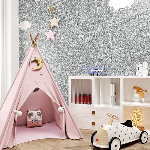 Carta Da Parati Glitterata Argentati Pellicola Adesiva Per Mobili Carta Parati Adesiva Muro Camera Da Letto Adesivi Decorativi Per Mobili Glitterata Spessa Carta Da Parati Bambini 40 x 200cm