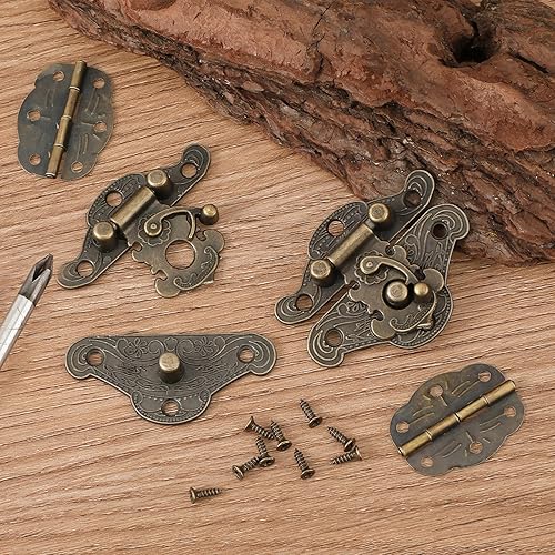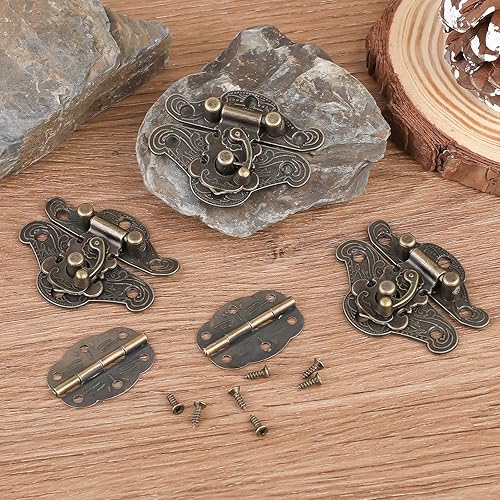 Set di 6 cerniere antiche per scatole di gioielli, cerniere e chiusure per scatole di legno antico goffratura decorativa Hasp serratura per decorazione di case in legno cerniere in stile europeo