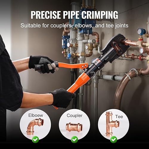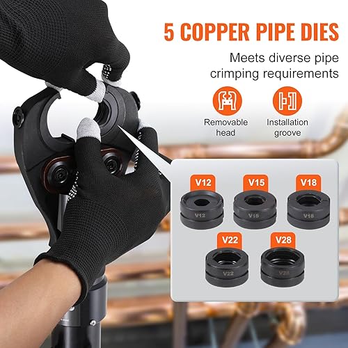 VEVOR Utensile per Crimpatura Idraulica per Tubi in Rame, Pinza per Pressatura con Ganasce a Cambio Rapido V12, V15, V18, V22, V28, Kit Pressa Girevole a 360° per Raccordi a T Azionati Idraulicamente