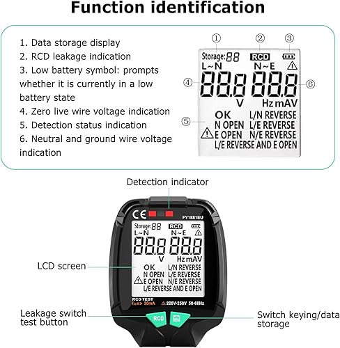 Tester di Presa, Prese Tester per Prese a Schermo Intero Ground Zero Tensione CA 30V-250V Spina di Prova RCD Verifica Fase polarità (Spina UE)