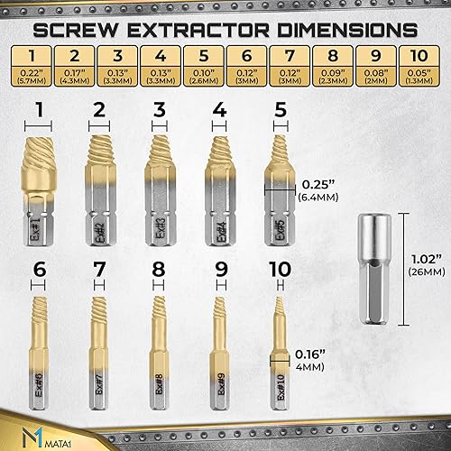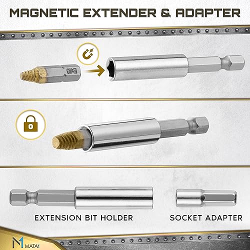 Set di estrattori per viti svitate, rotte e danneggiate - 22 pezzi, placcati in oro - Kit di rimozione con punte per trapano, estrattori, estensione per punte e adattatore per bussola