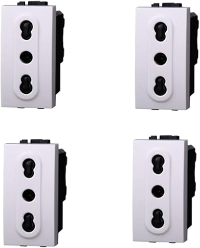 Presa Bipasso 2P+T 10/16A 250V, Compatibile con Bticino Living Light, Set da 4 Pezzi, Bianco